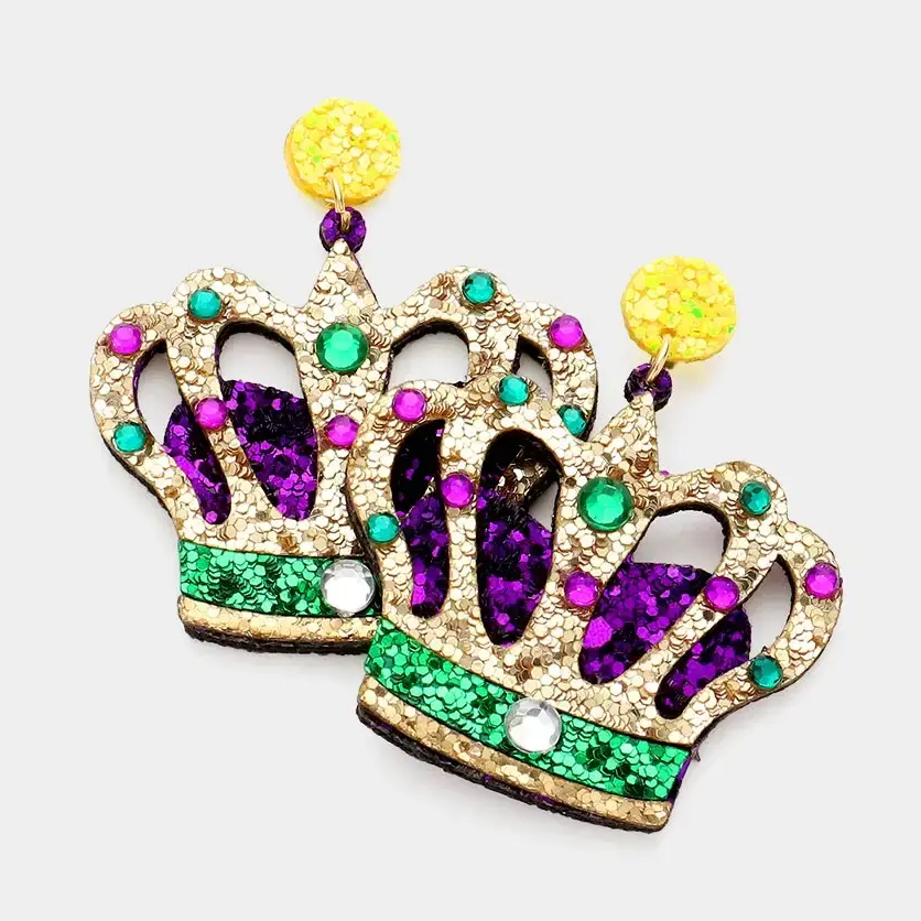 Glitter crown mardi gras earrings